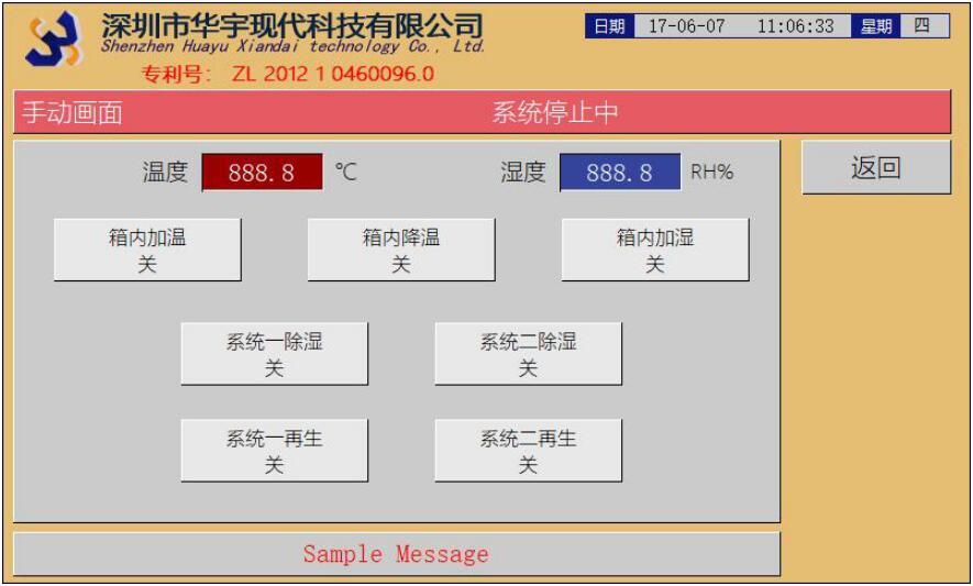 手動畫面:手動打開或關(guān)閉系統(tǒng)單項功能模塊。需要一級密碼進入。
