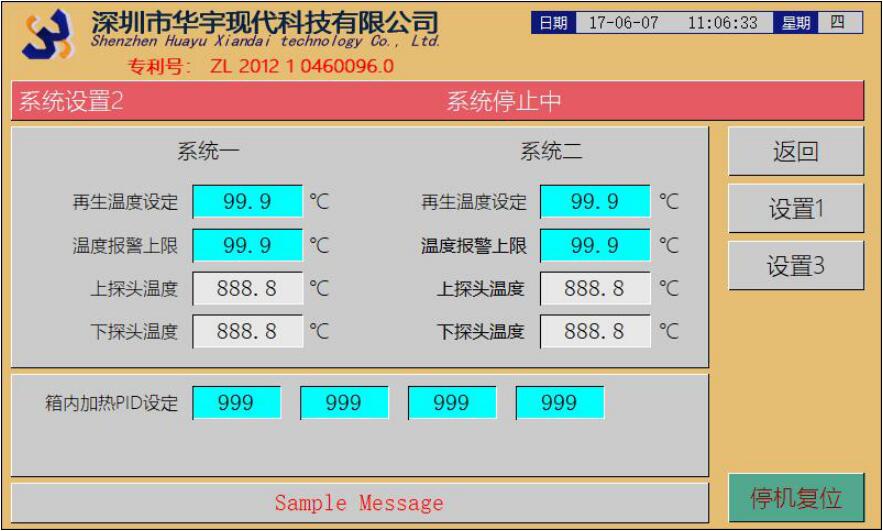 【再生溫度設(shè)定】:系統(tǒng)一和系統(tǒng)二再生溫度設(shè)定。