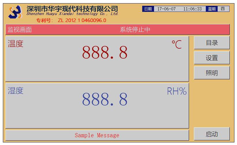 監(jiān)視畫面:主要顯示當(dāng)前箱體的溫度以及濕度。